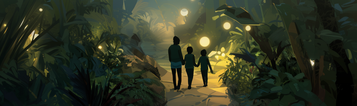 An interaktiven Stationen gibt es Spannendes zu erfahren und zu erleben. Rascheln, Flattern, Leuchten – in der Dunkelheit zeigt sich der Regenwald von seiner magischsten Seite. Gemütliche Leseecken sorgen zwischendurch für entspannte Momente, und im Café Tropencamp am Urwaldsee warten süße und herzhafte Leckereien auf die kleinen Dschungelforscher*innen.